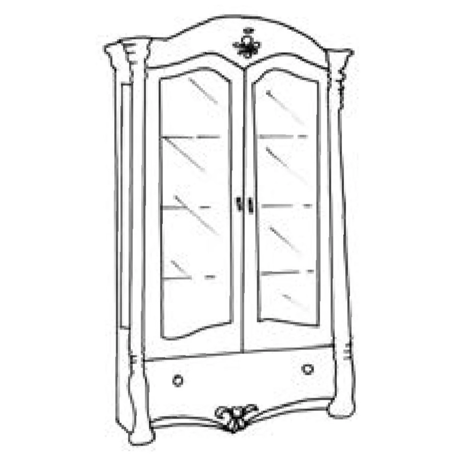 A teljes szerkezet farészecskés panelekből, dekoratív furnérozott, intarziás, festett félmatt kidolgozással készült. Az oldallapok 30 mm, az alsó és felső rész 18 mm, a fiókok pedig 25 mm vastagságúak. 25 mm vastag MDF-ből készült ajtók, metszett üvegekkel. A 8 mm vastag hátlap szövettel van borítva. A felső rész és a keretek faszerű anyagból készültek. A fiók oldalai többrétegűek, fecskefarok-illesztéssel összeállítva. A belső üvegpolcok 6 mm vastagságúak.