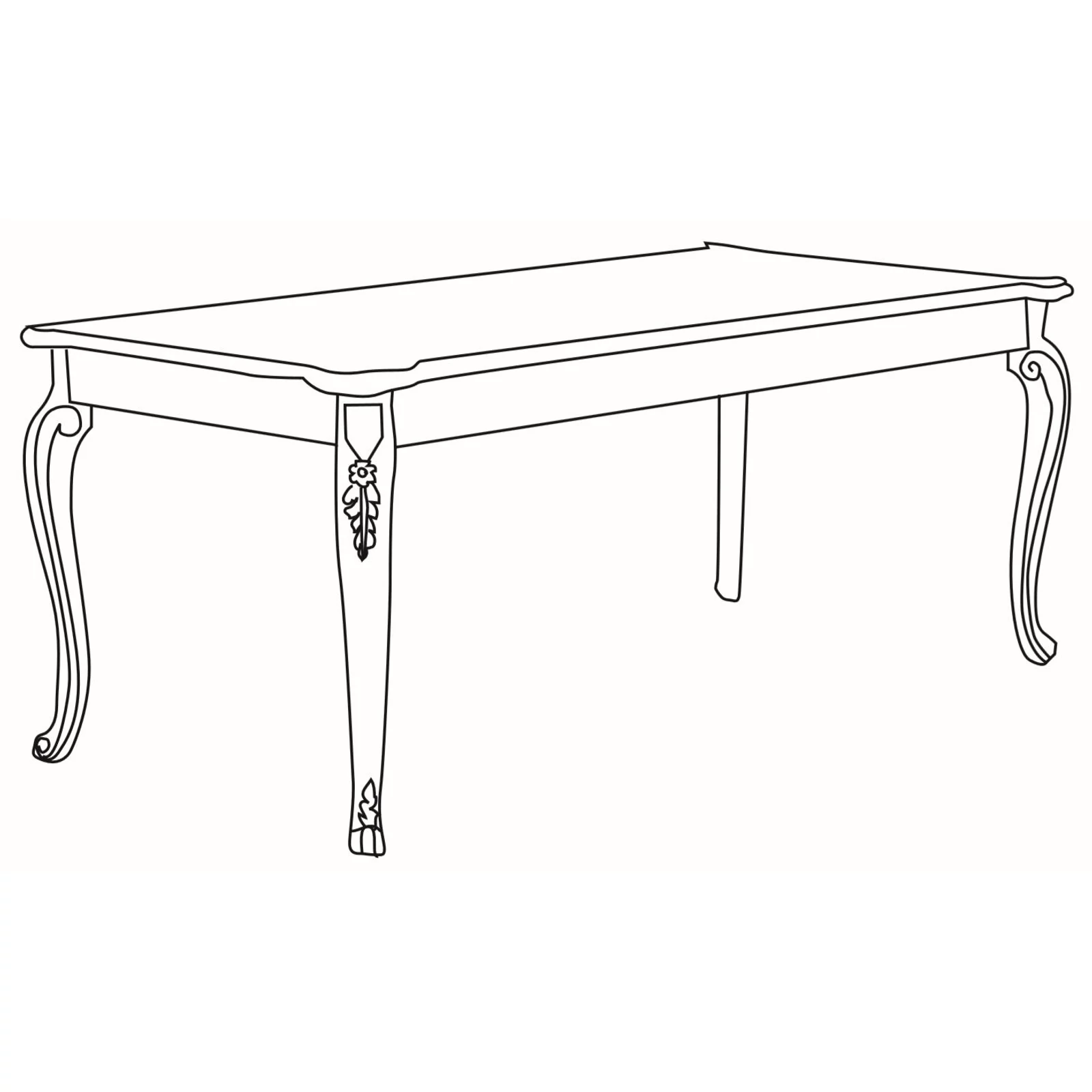 A fedőlap 25 mm vastag MDF-ből, dekoratív furnérozott panelből készült, festett félmatt kidolgozású dekorációkkal. A keret és a lábak fából készültek.