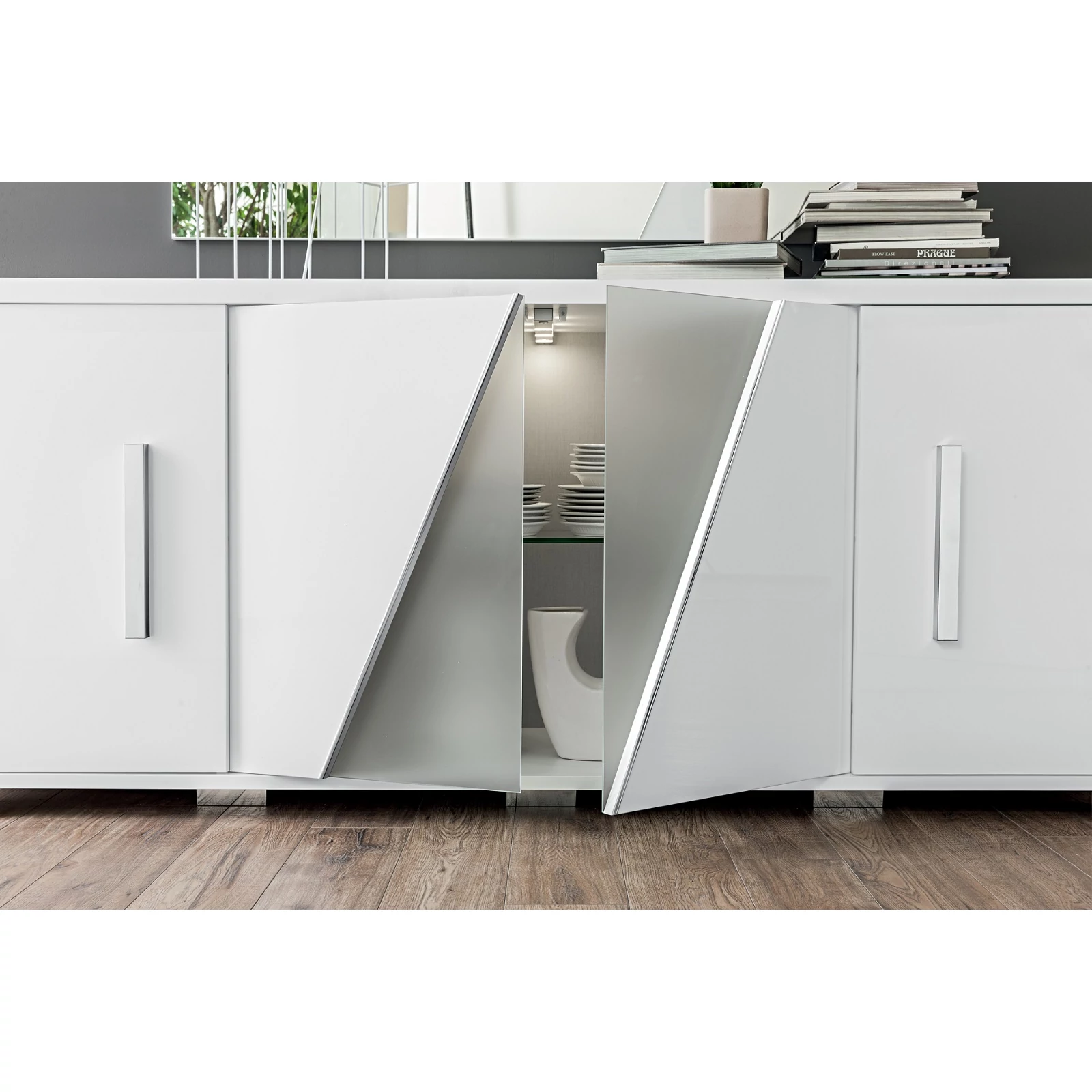 Új életformák, rendhagyó geometrikus minták, ötletek és inspirációk. Esztétika, amely nem mond nemet sem a praktikusságnak, sem pedig a technológiának. Különleges hely, melyet a részletek tesznek egyedivé. A nappali részletei egyedülálló stílusról, minőségről és szépségről tanúskodnak. Egy olyan elem, amely könnyedén és elegánsan illeszkedik az Ön szükségleteihez.