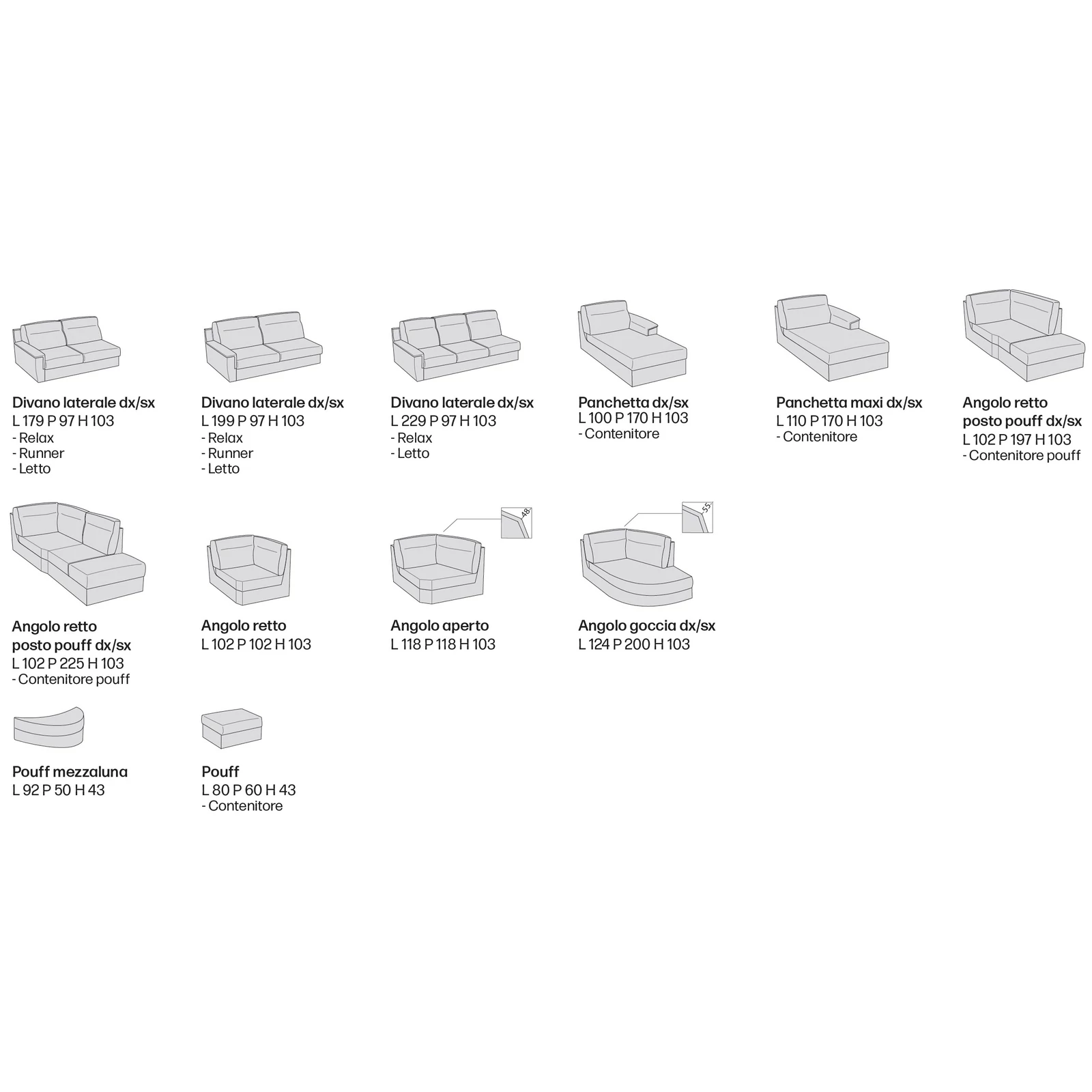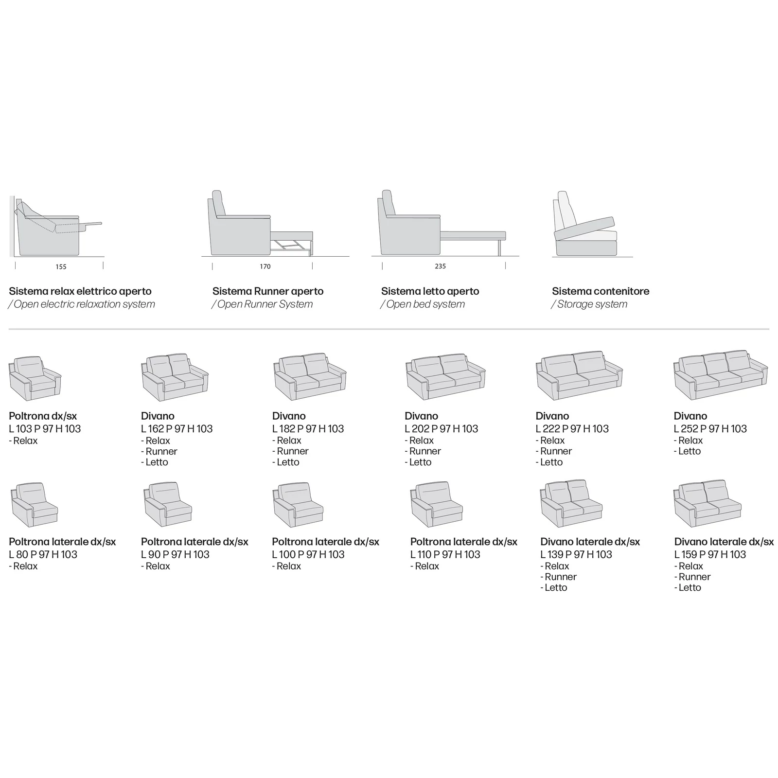 A Swing Bent kanapé teljes mértékben személyre szabható: több méret és többféle lábkialakítás közül, illetve hatalmas szövet- és bőrválasztékból válogathat, valamint ággyá alakítható változatban (letto), kihúzható változatban (runner), ágyneműtartós szerkezettel és komplett ülőgarnitúraként is rendelheti – így biztosan megtalálja az Ön számára leginkább megfelelő bútort! A kanapéhoz igény szerint elektronikus relax funkció, fotel, puff és díszpárna is választható. A részletekért és a pontos árakért kollégáink szívesen állnak rendelkezésére elérhetőségeinken!