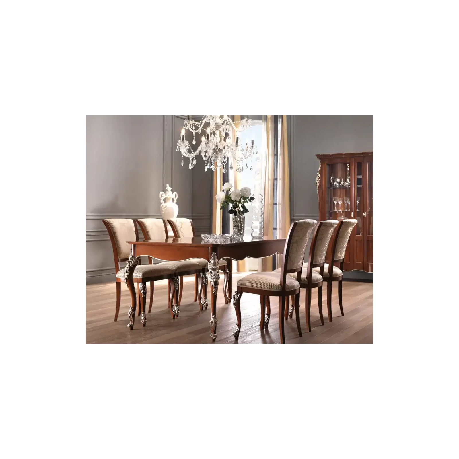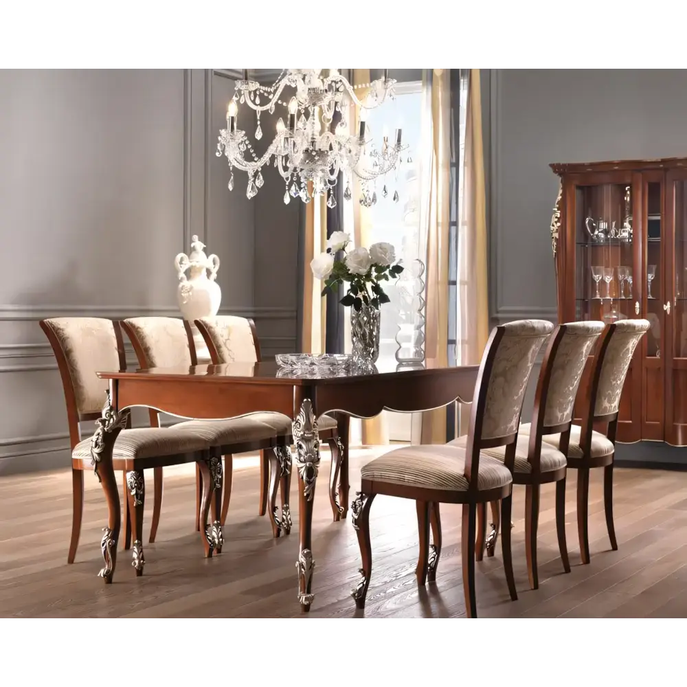 Részletgazdag faragások és finom kárpitozás teszi ezt a széket a klasszikus étkezők nélkülözhetetlen elemévé. Az időtálló formavilág és a prémium minőségű anyagok a Morello hagyományos olasz bútorkészítését idézik, miközben kényelmes ülőhelyet biztosítanak minden alkalomra. Exkluzív hangulat az Ön étkezőjében is.