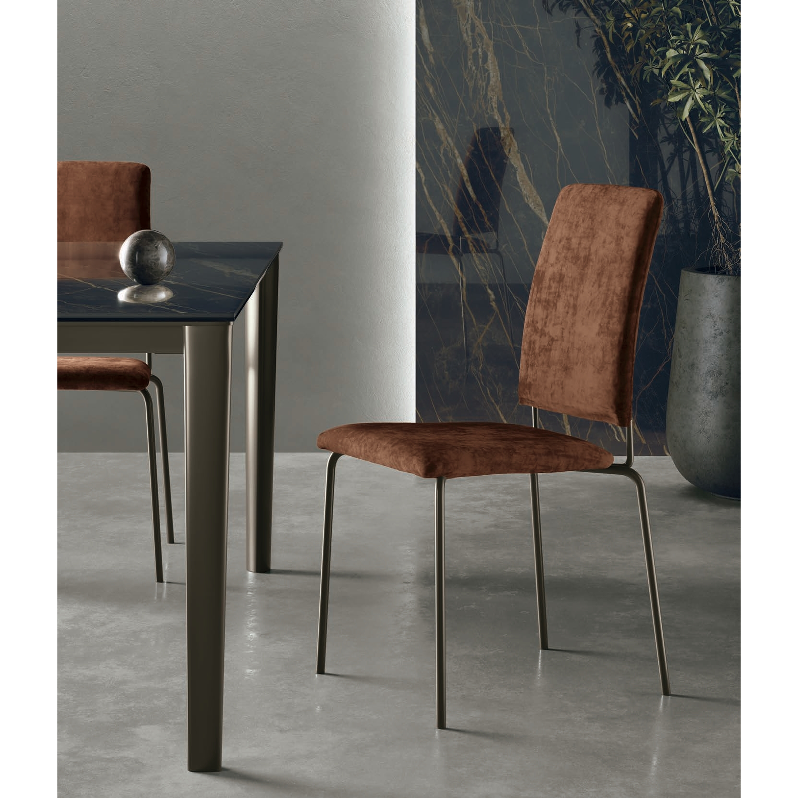 A Mimì szék egyszerű, mégis bájos megjelenését a karcsú, csővázas fémszerkezet határozza meg, melyhez a levehető huzatú (csak a Mimì S változatban) ülés és háttámla rögzül. Rugalmas, mégis tartós kialakítása sokféle enteriőrhöz passzol, a széles szövetválaszték pedig a legapróbb igényeket is kielégíti. Modern, kárpitozott szék, eredeti olasz anyagokból.