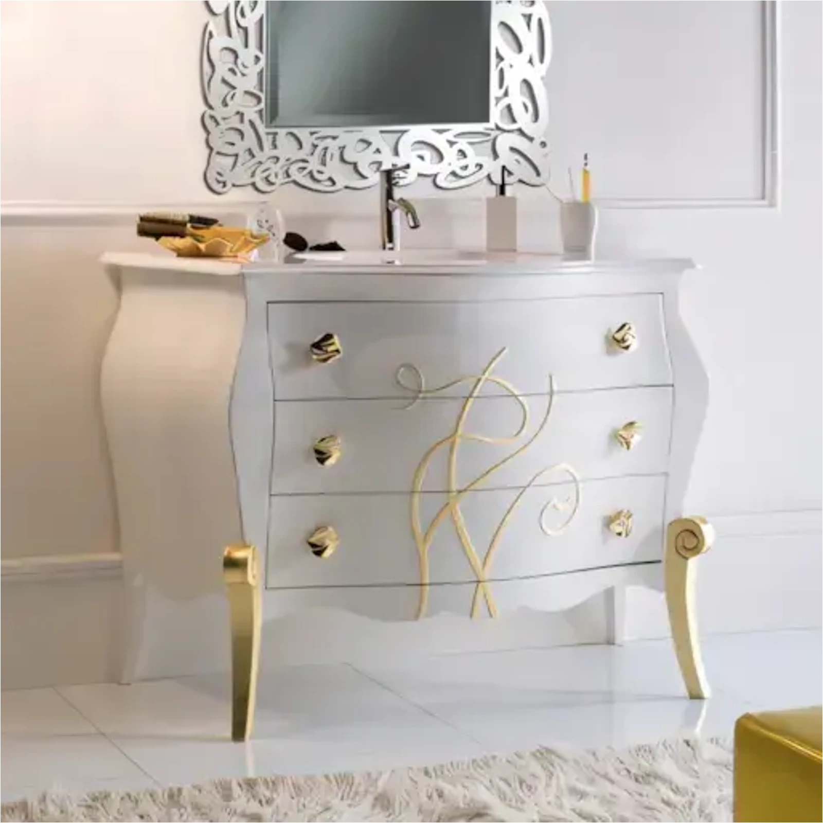 A fürdőszobaszekrény klasszikus stílusú báját kifinomult részletek és letisztult formák keltik életre. A minőségi alapanyagok és a gondos kidolgozás az Ön fürdőszobájába is luxus életérzést hoznak, hogy minden nap egy kis eleganciával kezdődhessen.