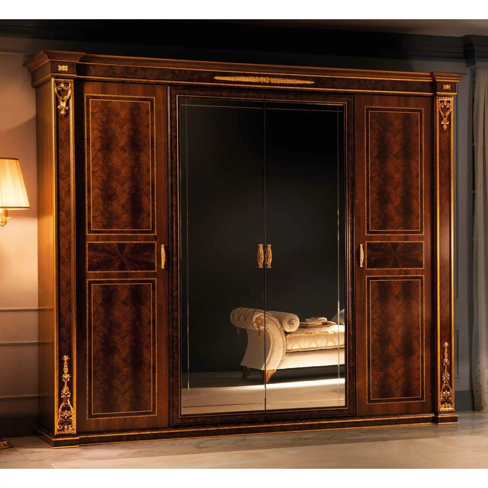 A fésülködő olyan tükörrel egészül ki, melynek kerete antik aranyfüstlemezzel van díszítve. A hálószoba főszereplője pedig nem más, mint a Modigliani ágy, amely akár a részletekbe menő luxus szimbóluma is lehetne. Értékes szövetek, minden részletében alapos kidolgozás és kiváló minőségű anyagok a jellegzetes olasz ízlést jelképezik.