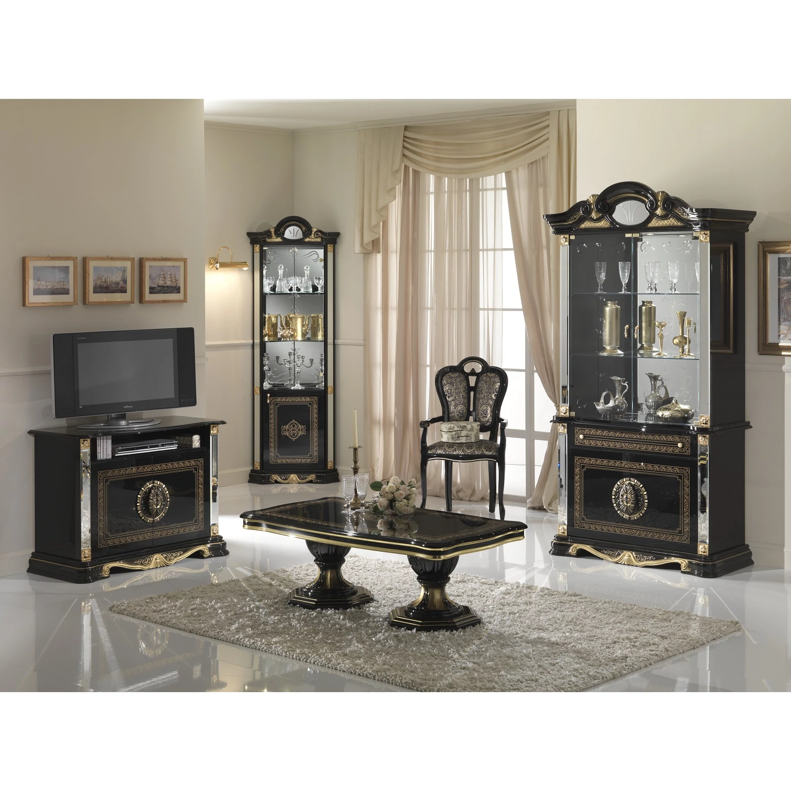 - BC Betty Day 2-üvegajtós tálalószekrény - fekete-arany: 1050mm x 480mm x 2130mm