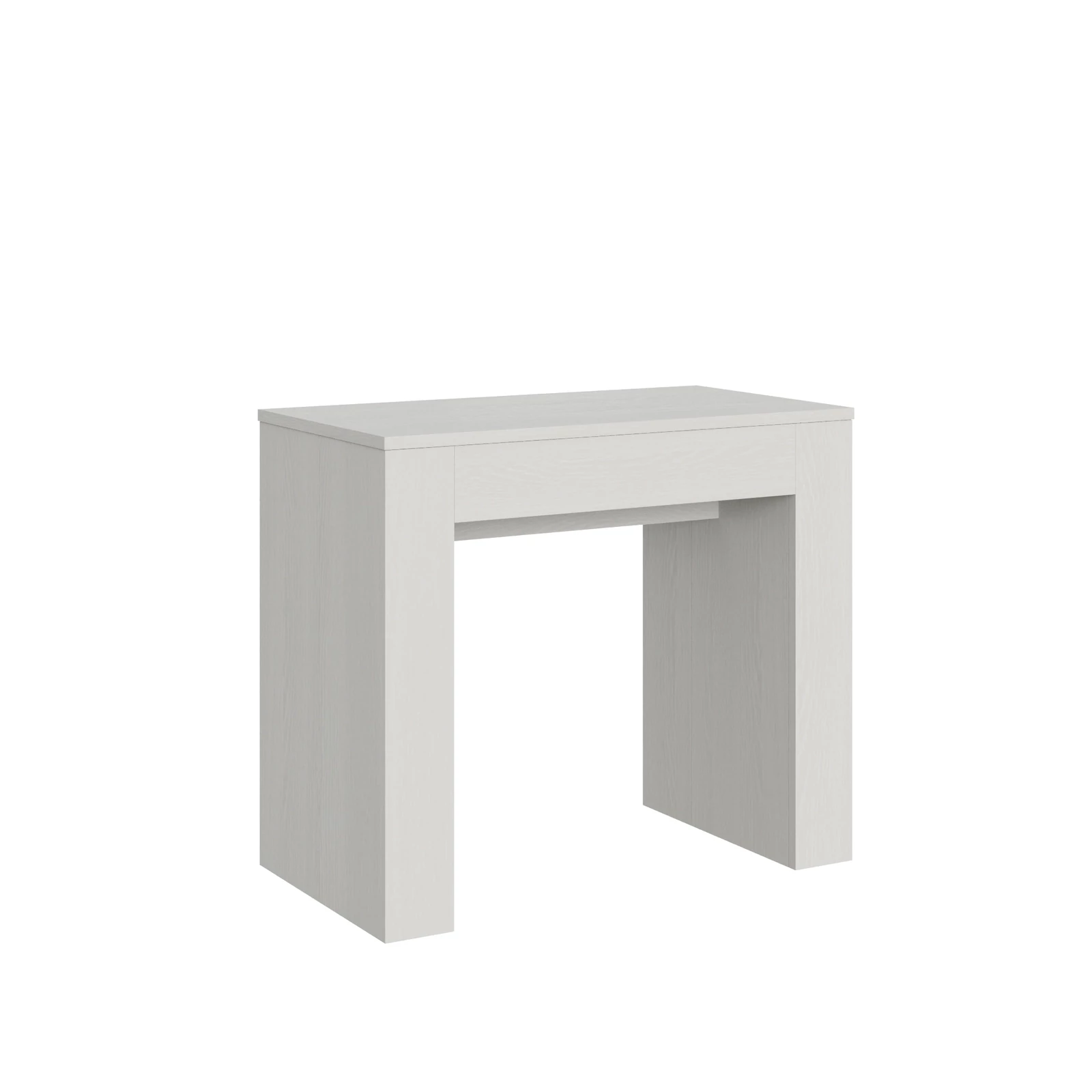 A sokoldalú és masszív Extra kihúzható konzolasztal tökéletes megoldás bármilyen helyiség berendezéséhez, legyen az előszoba, konyha, étkező, nappali vagy folyosó. Ez a konzolasztal könnyedén nagy étkezőasztallá alakítható, amely akár 307×90×78 cm-re is kinyitható, és legfeljebb 14 személy számára biztosít helyet. Melaminlapokból készült, kihúzható mechanizmusa teleszkópos alumínium síneket tartalmaz, integrált központi támasztórendszerrel a stabilitás érdekében. Összecsukott állapotban a bővítőlapok az asztal szerkezetében tárolhatók.