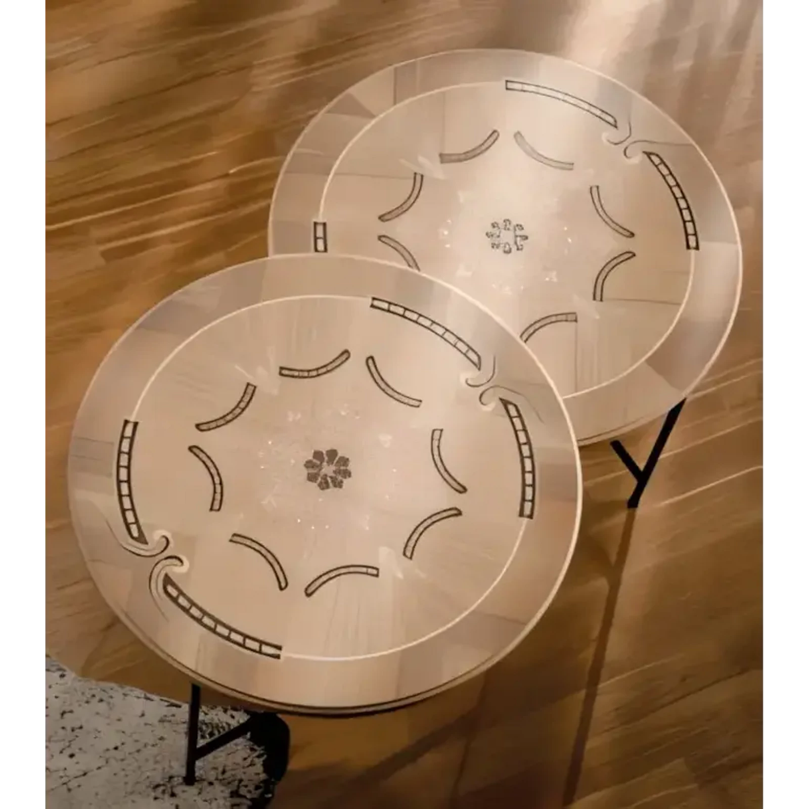 Morello klasszikus stílusú 2 db kisasztal fémlábakkal, intarziás