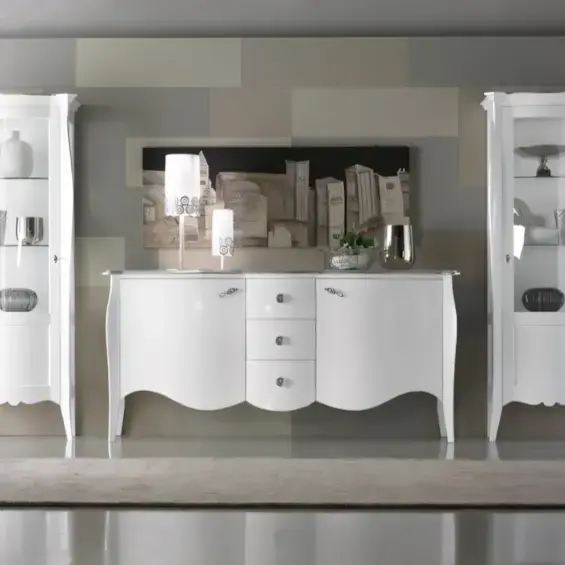 Elegáns vonalvezetés és gazdag díszítés jellemzi ezt a tálalószekrényt, mely a klasszikus enteriőrök elmaradhatatlan darabja. A minőségi faanyag és a kézműves kidolgozás időtálló szépséget kölcsönöz az étkezőnek, miközben a Morello olasz tradíciói minden részletben visszaköszönnek.