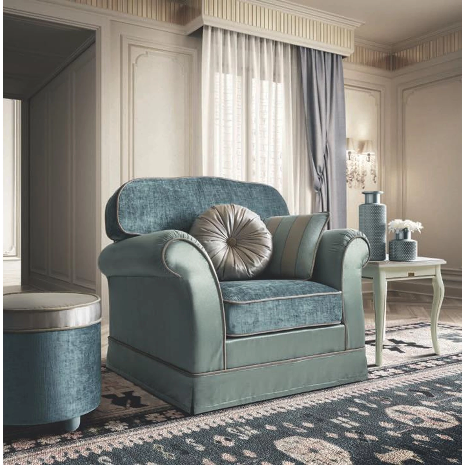 A furnérozott, vastag (25-30 mm!) fedlapok oldalán gyönyörű, keményfába faragott díszítés látható szinte minden bútoron. A konvex formájú, egészen egyedi jelleget biztosító fedlapok kerete mind tömörfából készül, mely garantálja az akár évtizedes időtállóságot. A mai világban egészen ritka módon az összes antikolást kézzel végzik az észak-olaszországi, évszázados hagyományra visszatekintő szakemberek. Válogasson kedvére ebből a meseszép kollekcióból: mivel a modell bármely eleme külön is rendelhető, bármekkora méretű tér könnyedén berendezhető vele. Ha nem találja, amit keres, vagy bármilyen kérdése van, kollégáink szívesen állnak rendelkezésére elérhetőségeinken!