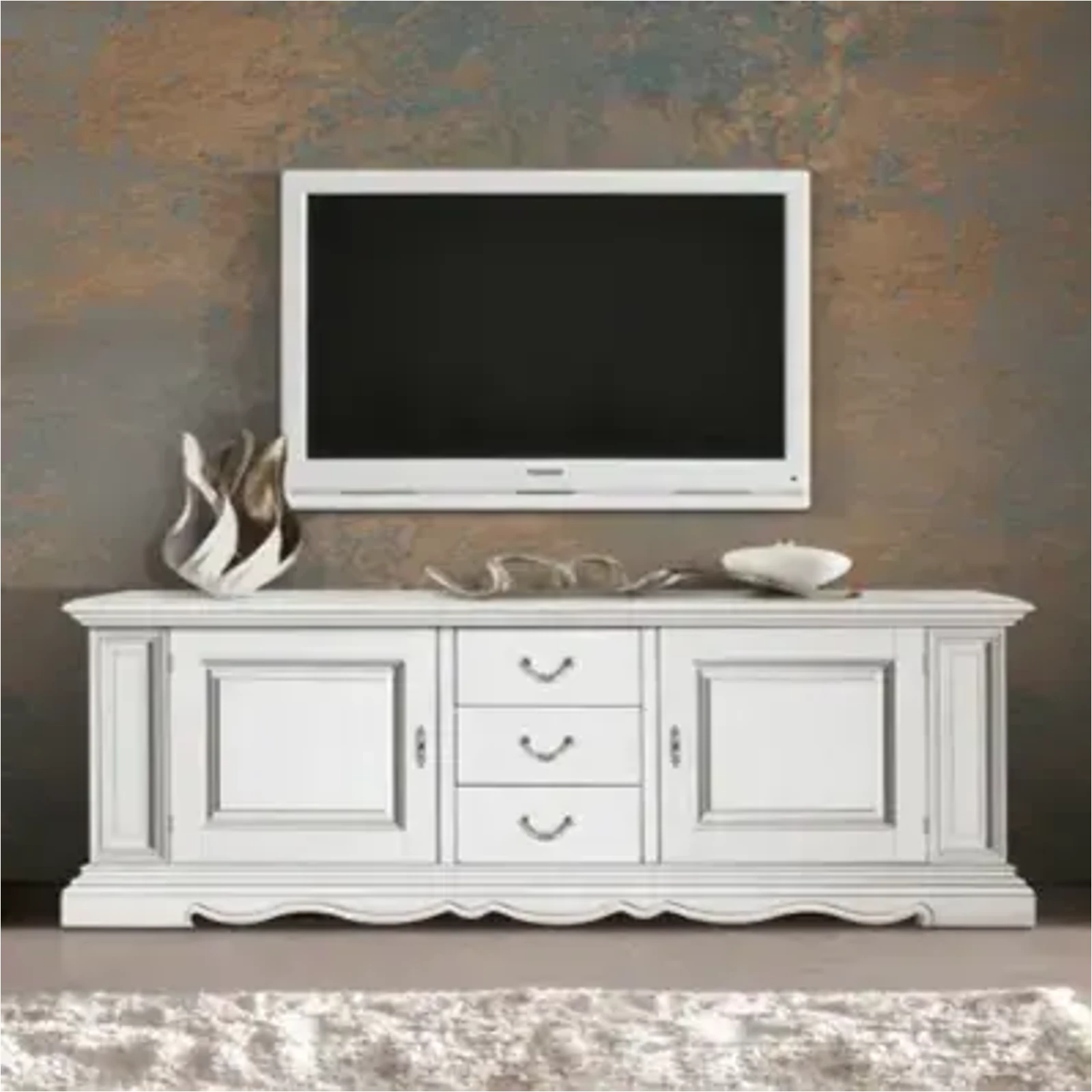 Morello klasszikus stílusú TV-szekrény, 2 ajtós, 3 fiókkal