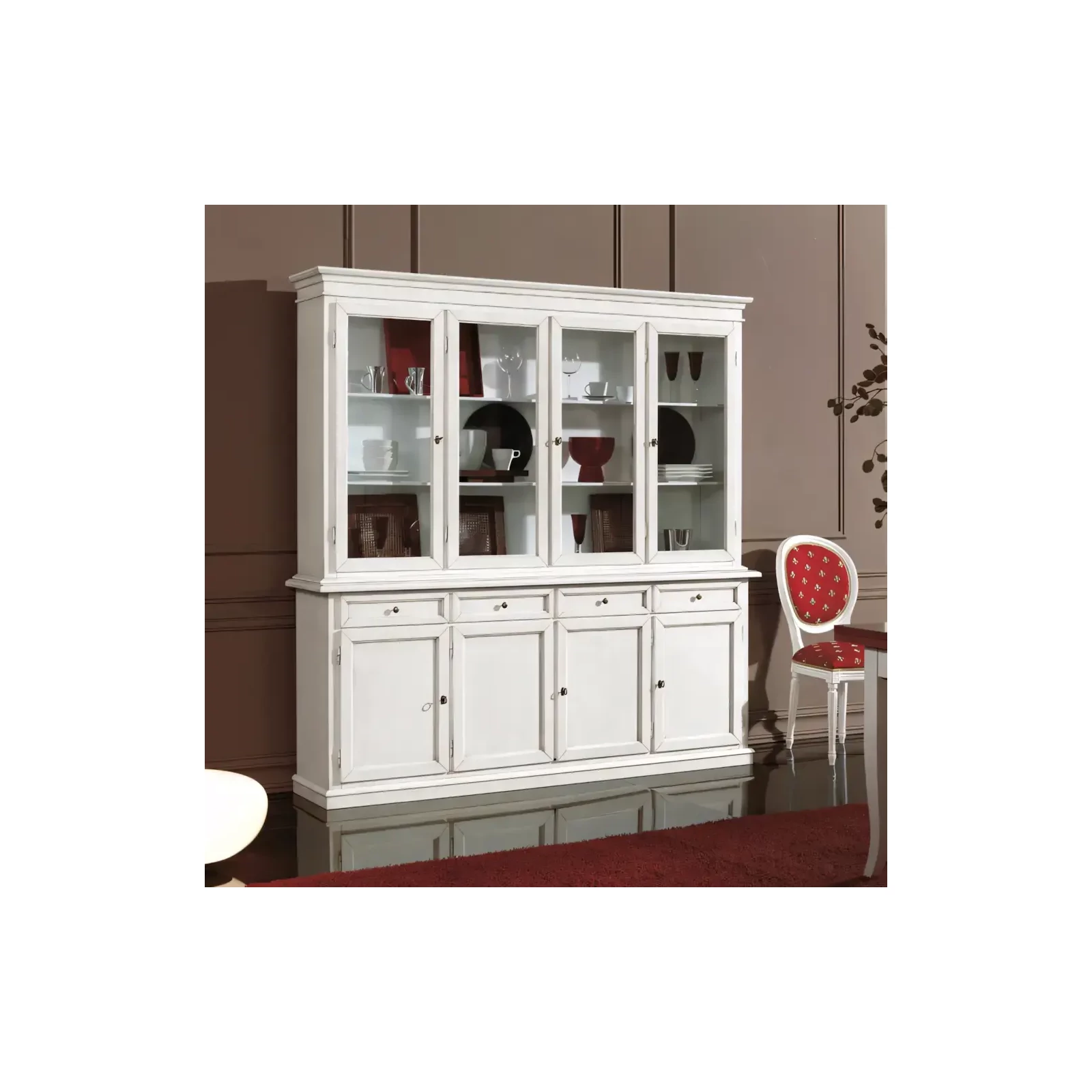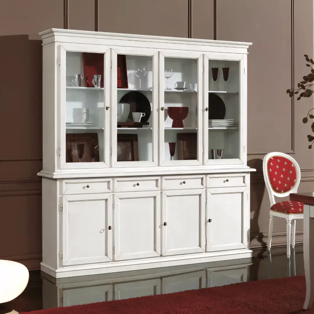 Morello rusztikus stílusú vitrines tálalószekrény, 4+4 ajtós, 4 fiókkal