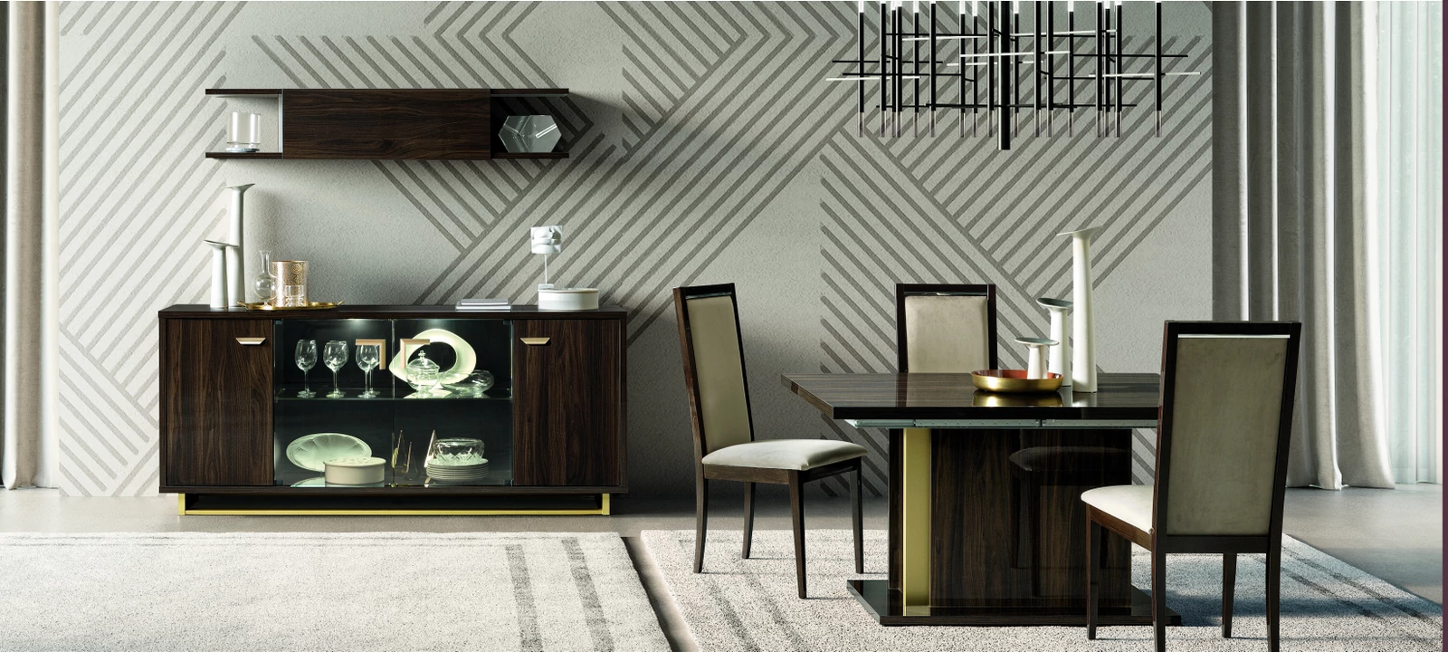 - Volare Day 4-ajtós tálalószekrény világítással - erezett dió: 2000mm x 530mm x 870mm
