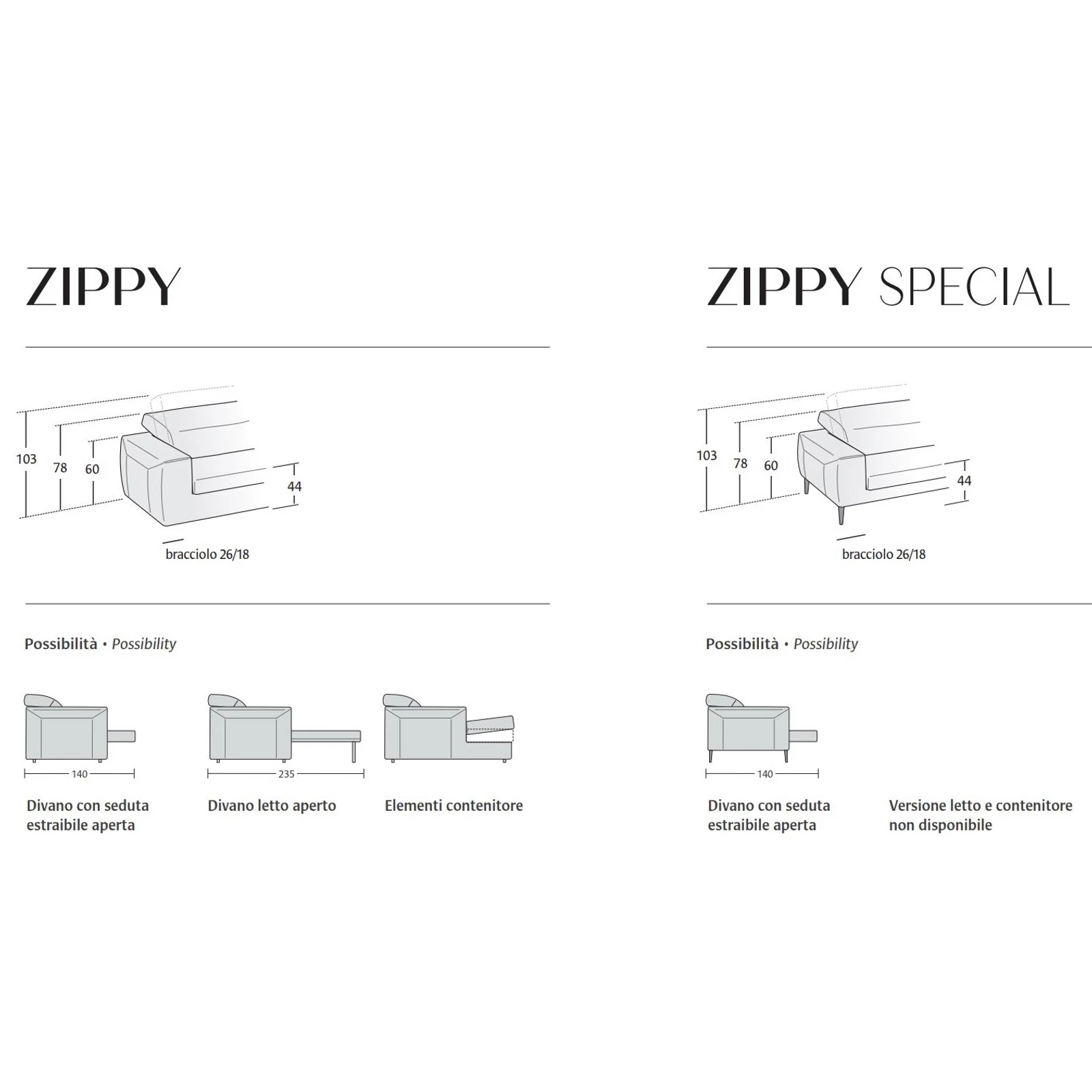 A Zippy és a Zippy Special kanapé teljes mértékben személyre szabható: több méret, kétféle design (standard és "Special"), kétféle karfa és többféle lábkialakítás közül, illetve hatalmas szövet- és bőrválasztékból válogathat, valamint ággyá alakítható változatban és komplett ülőgarnitúraként is rendelheti – így biztosan megtalálja az Ön számára leginkább megfelelő bútort! A kanapéhoz igény szerint fotel, puff és díszpárna is választható. A részletekért és a pontos árakért kollégáink szívesen állnak rendelkezésére elérhetőségeinken!