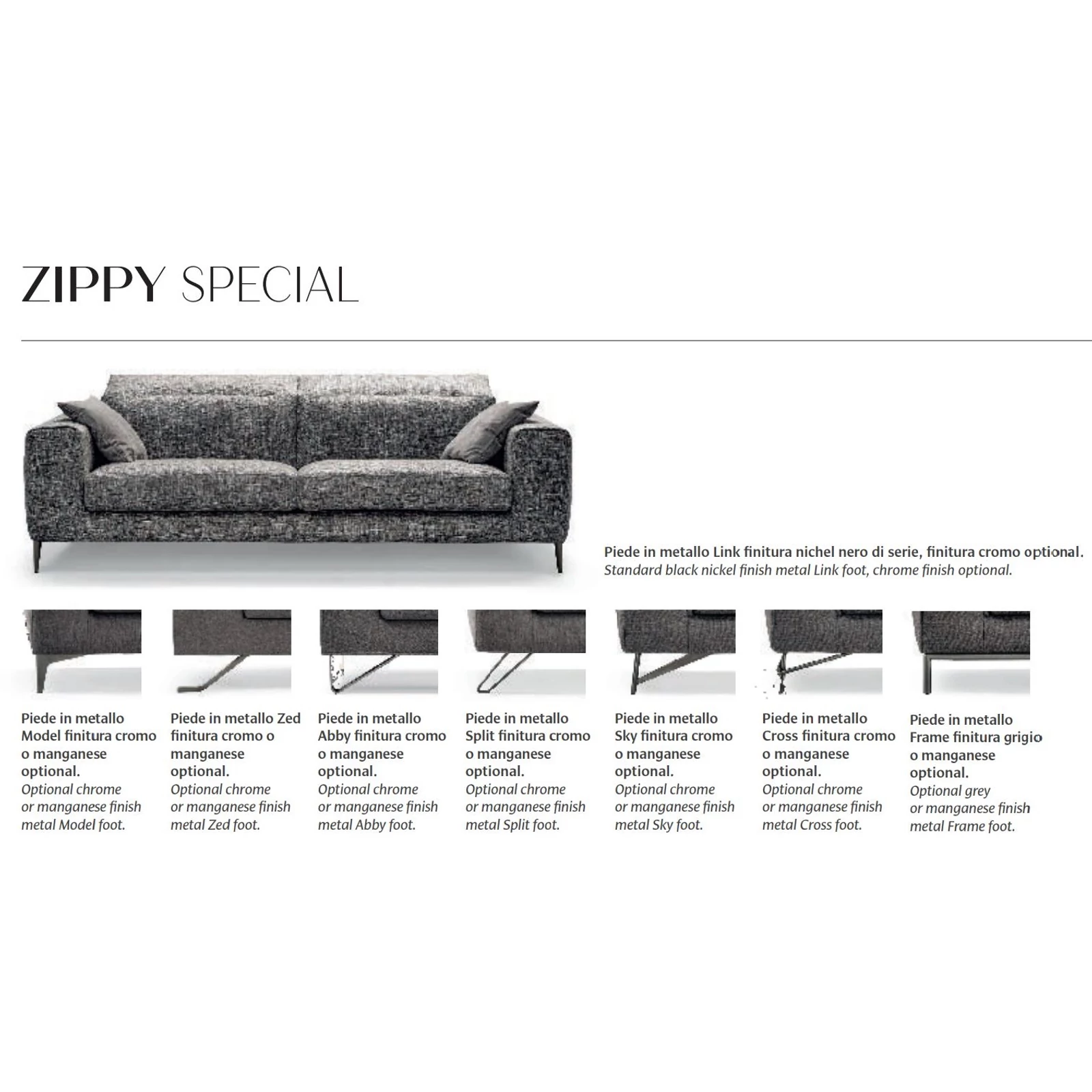 A Zippy és a Zippy Special kanapé lágy, lekerekített domborulatai kifinomult eleganciával hívja fel magára a figyelmet. A kényelmes deréktámaszt kínáló tágas ülőhelyek és a több pozícióban manuálisan állítható fejtámlák bármilyen időtöltéshez kényelmes megoldást szolgáltatnak. A Zippy és a Zippy Special modellek között a láb kialakítása tesz különbséget. A Samoa Mooving kollekcióhoz tartozó modell.